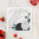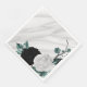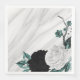 Vackra svarta vita och tealblommor med lite tealblått löv på silver grått-marmorbakgrund botaniskt bröllop papper napkin