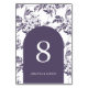 Elegant lila blommigt Arch bröllop bordsnummer.
