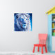 Vackert ai-konst som skildrar en vit mystisk lejon med blått ögon. Fantastisk konst, Surreal lejon.
