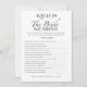 Vi presenterar "Vad har bruden på sig" Minimalistiskt bröllopsfest-spelkort i svart och vitt, designat av CaMiDesigns. Detta eleganta och stilrena spelkort lägger till ett roligt och interaktivt element till vilken bröllopsfest som helst, så att gästerna kan gissa detaljerna i brudens outfit i en chic, minimalistisk design. Perfekt för att skapa varaktiga minnen och skratt, detta spel är ett trevligt tillägg till din fest. För hjälp med beställningar, leverans, produktinformation och mer, vänligen kontakta Zazzle Customer Care direkt.