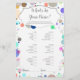 Doble sided Baby dusch-spel. Den ena sidan är "Vad finns i din mobil?" och baksidan är "Vad finns i din handväska?" Det här babyduschkortet har ett skript med modernt typsnitt på multifärgadens bakgrund, perfekt för pojke, flicka eller en överraskning! Använda det här kortet för din gender visar party!