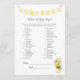 En roligt till babyduschen är The What's in your purse? Det här spelet har en banderoll överst på gulten och en nalle med ett bin. På motsatt sida lutar en nalle på en honungsfat som tittar på ett honungsbin med mallar.