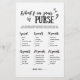 Ett modernt och minimalistiskt spel i svartvitt. Om du vill spela det här möhippan fyller varje gäst på kortet med alla objekt som de kan hitta i sin handväska och lägger sedan till poängen till slut. Personen med flest poäng vinner spelet! Det här "What's In Your Purse"-spelet är en roligt för en möhippa, förlovningsfest, bachelorette party eller bröllopsmottagning och ett underbart sätt att bryta isläget mellan gästerna.