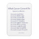Tungtext av "What Cancer Not Do" (Vad cancer kan inte göra) på en magnet. Det här är en underbar cancerpatientgåva! Anpassa magneten med egen text och bilder för att göra den personlig. Ändra bakgrunden till färg med redigeringsalternativ! Det som cancer inte kan göra cancer är så begränsadt... Det kan inte lamslå kärlek. Det kan inte skingra hoppet. Den kan inte bekräfta tron. Det kan inte förstöra freden. Den kan inte döda vänskap. Den kan inte undertrycka minnen. Den kan inte tysta modet. Det kan inte invadera själen. Det kan inte stjäla evigt liv. Den kan inte erövra andan. - Författare Okända vinster från denna försäljning stöder den ideella verksamheten 501 c)3 DonnaBellas Änglar.