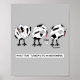 Tre skrämda kalkoner målar sig själva som kor och stavar ut "MOO". Det står "What Döv Turkey do in November".