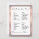 Öka möhippans glädje med det engagerande och underhållande spelet "What's in Your Purse" (Vad har du i ditt ärende?). Designad för att skapa skratt och anslutningar, uppmuntrar den här trevliga aktiviteten dina gäster att utforska sina handväskor och identifiera olika artiklar från en noggrant sammansatt lista. Spelet har ett värde mellan 5 och 20 poäng och innebär att man inför ett vänskapligt konkurrenskraftigt kant som kommer att få alla att ivrigt delta. Spelets presentation skryter med en ren vit bakgrund som är försedd med ett glamordrag - en ro-guld-polka-punkt gräns - och som skapar balans mellan perfekt och tidlös elegans och contemporary stil. Den fängslande frasen "What's in Your Purse" (Vad är i din handväska) är mitt i ett sofistikerat, svart, modernt typsnitt, teckning i dina gäster och anger tonen för en roligt och interaktiv upplevelse. Listan med spelobjekt visas i ett vanligt svart blockteckensnitt, vilket gör att alla deltagare kan se och få enkel använda. Ord "namn" och "summa" tillsammans med ett snyggt kursivt linjer återges i ett söt svart kursivt teckensnitt, vilket gör att spelets utformning påverkas av en elegant. Med sin pristina vita bakgrund och utsökta ro-polka-punkt gräns kompletterar detta spel utan problem alla möhippor och tillför en aning sofistikering och charm till ditt evenemang. När gästerna gräver sig i sina väskor och markerar de upptäckta objekten fylls rummet med skratt, konversation och delade minnen, vilket skapar en oförglömlig atmosfär. "What's in Your Purse" är mer än bara ett spel - det är en engagerande isbrytare som främjar kontakter mellan gäster och firar briden to be:s speciella tilldragelse. Med det här fantastiska spelet i spelet är din möhippa säkert en händelse som alla håller fast vid och som i åratal har varit ett stort minne för komen.