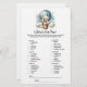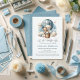 Äventyr temade "What's In Your Purse", babyduschspel med en vacker vit valp som håller en nalle riden i en blå luftballong. Vattenfärgen blå himmel har vita moln med omgivande guld-stjärnor. Mallar på baksidan.