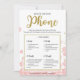 Denna moderna blomsterdekorerade "Vad finns på din telefon" har en rosa blomsterbakgrund med gyllene glitterstänk. Texten är skriven i en blandning av ett lekfullt kalligrafiskt teckensnitt och ett modernt sans-serif-teckensnitt, detta "Vad finns på din telefon"-kort är personligt anpassat med brudens namn och bröllopsduschens datum.