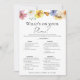 Vi presenterar "What's On Your Mobil"-spelkortet med en vacker vattenfärgdesign med färgstarka blommigt vår-vilda blommor, perfekt för en boho-möhippa! Det här charmingkortet tillför firande en roligt och uppmuntrar gästerna att sitt snabba mobila innehåll samtidigt som de får en trevlig och interaktiv upplevelse. Designat av CaMiDesigns är detta spelkort inte bara en underbar isbrytare utan också en underbar keepaus från speciella dag. Kontakta Zazzle Customer Care direkt om du vill ha hjälp med beställningar, frakt, produktinformation m.m.