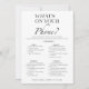 "Vad finns på din Mobil?" CaMiDesign-kortet för möhippa är en roligt och ett intressant sätt att underhålla gäster vid möhippan. Denna minimalistiska svartvita design tillför lite elegans till firande samtidigt som den uppmuntrar till skratt och vänskaplig konkurrens mellan deltagarna. Perfekt för att bryta isläget och skapa minnesvärda stunder, detta spelkort är ett trevligt tillskott till alla möhippor firande. Kontakta Zazzle Customer Care direkt om du vill ha hjälp med beställningar, frakt, produktinformation m.m.