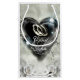 Vackra eleganta bröllopspresentförpackningar som du kan anpassa. Denna presentpåse har en tryckt bild av en akrylmålning av två silverbröllopsringar inuti ett kristallhjärta. Det finns också två vackra vita rosor på designen. Stor bröllopspresentförpackning att lägga din bröllopspresent i till bruden och brudgummen.