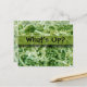 Närbildsfotografering fångar gröna skrynkliga och strimlade pappersremsor på vykortets framsida med samma reducerade opacitetsbild på baksidan. Anpassa malltexten med ditt meddelande.