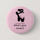 Texten säger: "Vad är din poäng?" En silhuettillustration av ett par svarta balettskor/tofflor som står i den klassiska och contemporary balettdansaren dyker upp på topparna av deras tråd, som kallas en pointe. Bakbround är rosa med lite vit polka dots.