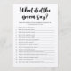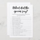 Det här spelet är perfekten för att behålla dina gäster som är gäster vid en möhippa eller annan bröllop-händelse! Ställ bara frågorna före evenemanget och registrera hans svar. Gästen som matchar det mesta av rummen svarar vinner!