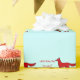 Fox säger, rödräv på blå papper med ord som kommer från mun.