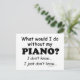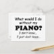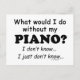 Vad skulle jag göra utan min piano? Jag vet inte... Jag vet inte... Känner du dig så? Känner du att utan musik skulle det vara som att vara borttappad på en båt i havets mitten? Det kanske inte är så illa, men det kan lämna ett stort tomrum i ditt liv. Det kan göra en bra gåva till en musikervän vars hela liv verkar kretsa kring musik!
