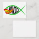 En parodisk design av Ichthys (Jesus Fiske). Ichthys-fiskens utformning, som är förstörd med Joker Fish från en tecknad bok-tecknad. WJD i svart text är inne i fisket och frågar: "Vad skulle Joker göra?"
