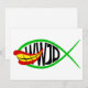 En parodisk design av Ichthys (Jesus Fiske). Ichthys-fiskens utformning, som är förstörd med Joker Fish från en tecknad bok-tecknad. WJD i svart text är inne i fisket och frågar: "Vad skulle Joker göra?"