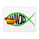En parodisk design av Ichthys (Jesus Fiske). Ichthys-fiskens utformning, som är förstörd med Joker Fish från en tecknad bok-tecknad. WJD i svart text är inne i fisket och frågar: "Vad skulle Joker göra?"
