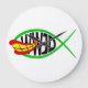 En parodisk design av Ichthys (Jesus Fiske). Ichthys-fiskens utformning, som är förstörd med Joker Fish från en tecknad bok-tecknad. WJD i svart text är inne i fisket och frågar: "Vad skulle Joker göra?"