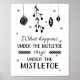 Denna humoristiska julposter kommer att bli perfektens tillägg till din hemdekanter under julhelgen. I den här designen står frasen "Vad som händer under mistletoe stannar under mistletoe" i en kombination av svart typsnitt, med en sprit av mistletoe och vissa julprydnader och snö.