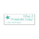 Den här inspirerande gummidesignen i frimärke innehåller det positiva budskapet "Vad underbart Essay!" och en personlig lärare i namn. Den har också en dekorativ stjärnform. Det skulle kunna användas av en skollärare, lärare, instruktör eller lärare när de markerar uppdrag för att erkänna att student har gjort bra ifrån sig.