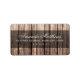 Returadressetikett med gamla, väderbitna lador plankor. Brun ton. Tvärs över finns ett mörkare område med mallfält för ditt namn och adress
