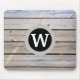 Musmattor med väderbitet tallträ-utseende monogram. Du kommer att älska denna rustika men moderna mysiga look! Vitt monogram bokstav i svarta och grå cirklar och en bakgrund av väderbitna tallträ plankor.