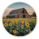 Vilda gamla lador omgivna av solblommor och trästängsel.