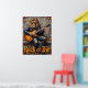 Denna dynamiska grafik visar en lejon, tittar coola i solglasögon och i läder jacka, mästerligt "sönderdelad" en elektrisk gitarr medan den sitter på en sliten träledge. Bakgrunden är en rik texturerad trävägg, försedd med utspridd höst löv. Den tjocka, uttryckliga impaston skapar ett påtagligt struktur, skapar "Sten eller Die"-deklarationen som svarar mot prestandans råenergi.