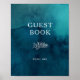 Denna stämningsfulla havsakvarell gästboksskylt är perfekt för ditt enkla tropiska boho-bröllop. Den är designad med minimalistiska vita tropiska blad och en fantastisk mörkblå-grön bakgrund.