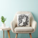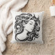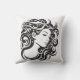 Pillow med en illustration av en stor hårstrå, svart och vit linje teckning, kvinnlig porträtt i en kvinna i våg