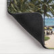 Stig genom palmerna till stranden vid havet på en musmatta.