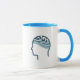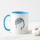 En enda silhuett med oceanen vågar stigning från toppen av huvudet, symboliserar djupa tankar och känslor. Ren, abstrakt linjer med mjukt flytande kurvor. Balans mellan intellektuell och känslomässig perfekt.