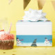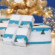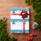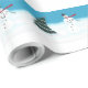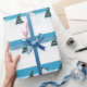 Målning av en julgran- och snögubbedans i snön, skrivs ut på inpackning av papper.