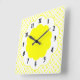 Väggen för mönster för solskengultblomman tar tid fyrkantig klocka