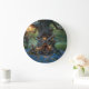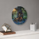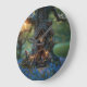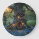 Cute Gnome-huset i en bark i träd omgiven av blåklockor vid solnedgången.