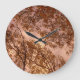 Söt väggklocka med en abstrakt av höst löv mot ett intensivt skevt himlar.