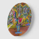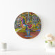 Ett vackert fotografi av färgstarka karusellhästar tryckt på en rund väggklocka.