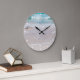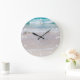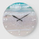 Lägg till lite lugn och lugn i vilket rum som helst, med den här kärlek-väggklockan, med ett foto av vågar på stranden. Vita nummer och prickar, runt kant om klockan. Anpassa om du vill lägga till text.