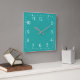 Turquise Square Wall Clock. Du kan enkelt ändra bakgrunden till färg. Perfekt för att dekorera hem, kök eller kontor. Du kan lägga till text och bilder om du vill att siffrorna ska stanna.