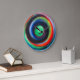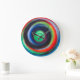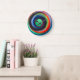 En färglös väggklocka som visningar originalteckningen "Spiraling" (Spiralning) - ett vibrerande biet där färg spiral och blandning sker.