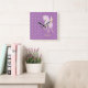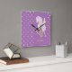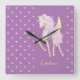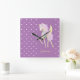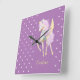 Väggklocka med en söt bild av en enhörning på en rosa - lilak bakgrund.