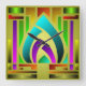 Färgstark och livfull Art Deco-design i guld, grönt, orange, blått, rött och lila.
