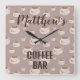 Perfekt för ditt kök skapar den här kantiga väggklockan, med kaffebönor och kopp är anpassade efter ditt namn.
