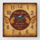 Personlig Faux Vintage Butterfly Wall Clock med tre fjärilar, Namn och Ditt meddelande eller Ta bort någon del av texten eller designen. Du, eller CALL Designers Rodney eller Linda: 239-949-9090 för att överföra den här eller någon av våra designar till ditt val av TUSANDS för andra fjärilshyftar för Butterfly Älskare. Monarch-fjärilshyllor åt honom eller henne. Vintagen tittar Butterfly Clock med stora roliga nummer. Du, eller designers, kan också ändra FÄRGEN Rusty Brown Background and Light Text till ANY FÄRG. Underbar gåva till vänner, familj och din vintage-fjärilshusare.