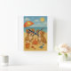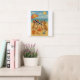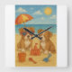 Bekväma vattenfärger illustrerar två bruna och vita valpar som njuter av en soldag på stranden. Den ena har en stark röd solglasögon under ett färglöst paraply, medan den andra sitter bredvid ett nybyggt sandslott. Perfekt för sommarkonst älskare, hund entusiaster och alla som förespråkar söt, lekfull konst.