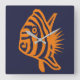 Tropiska fiskens kvadratväggklocka. Stora fiskar i orange på marinblå bakgrund.