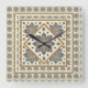 Den här färgfulla murkloset har medaljer med flera färg. Skuggor av kräm och tan dominerar. Formgivningen påminner om en persisk matta., eller en moras. Medallions bilder kom från en handgjord platta av Oregon-plattmakaren Fay Jones Day.