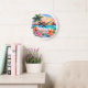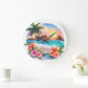 Vägglås: Tropiskt serenity Majestic Handflatan Trä Stor Klocka